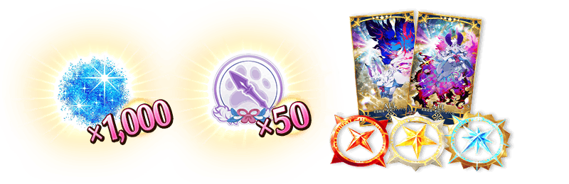 ミッションをクリアすることで極星のトーチ1個、明星のトーチ1個、新星のトーチ1個、星光の砂1,000個、英霊結晶・終局のフォウくんALL★5(HP)3枚、英霊結晶・原初のフォウくんALL★5(ATK)3枚、獣の足跡〔ランサー〕50個を獲得できます!