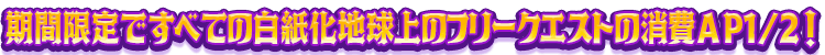 下記の期間中、白紙化地球上におけるフリークエストの消費APが1/2になります!
