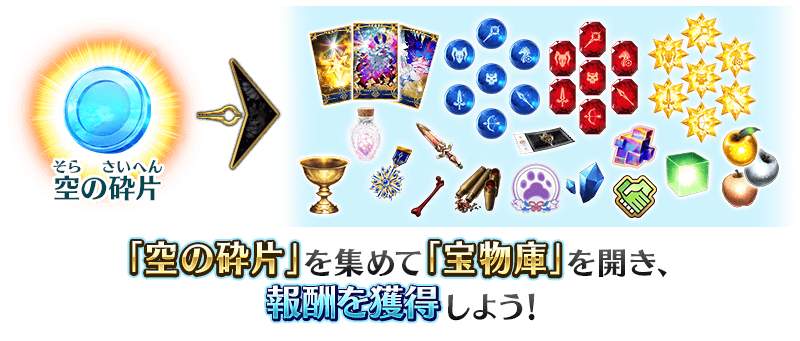 イベントクエストで「空の砕片」を集め、宝物庫を開いて宝物を獲得しましょう!