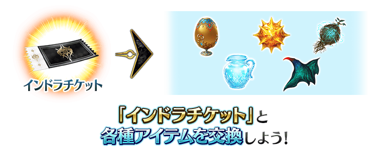 「インドラチケット」は、プレゼントボックスより5種類のアイテムのいずれかと交換できます。
