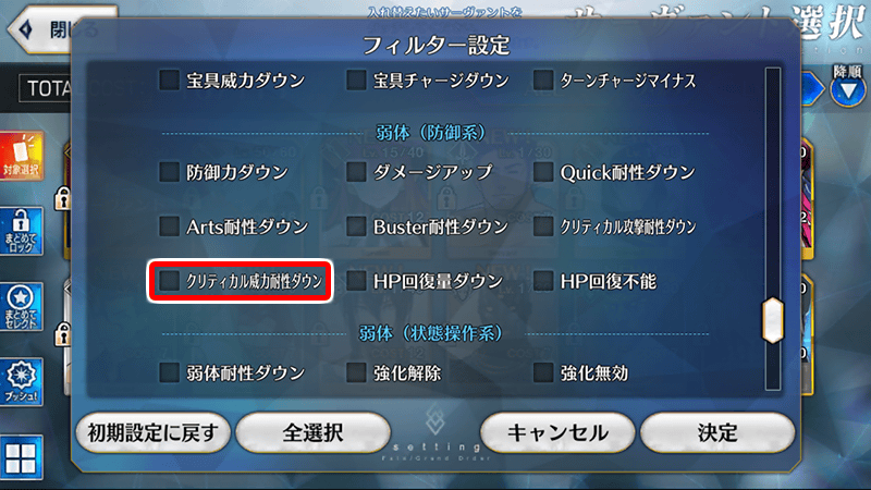 【サーヴァントの効果タイプフィルター設定の変更内容】
