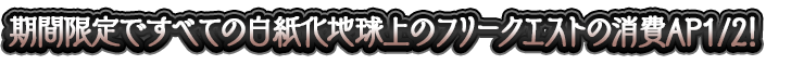 下記の期間中、白紙化地球上におけるフリークエストの消費APが1/2になります!