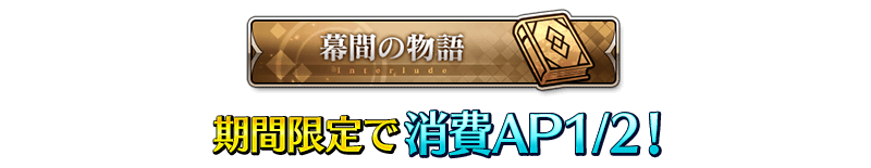 下記の期間中、期間限定でイベントボーナスサーヴァントの「幕間の物語」の消費APが1/2になります!(バトルにおいて撤退した場合でも、同様の消費量になります)