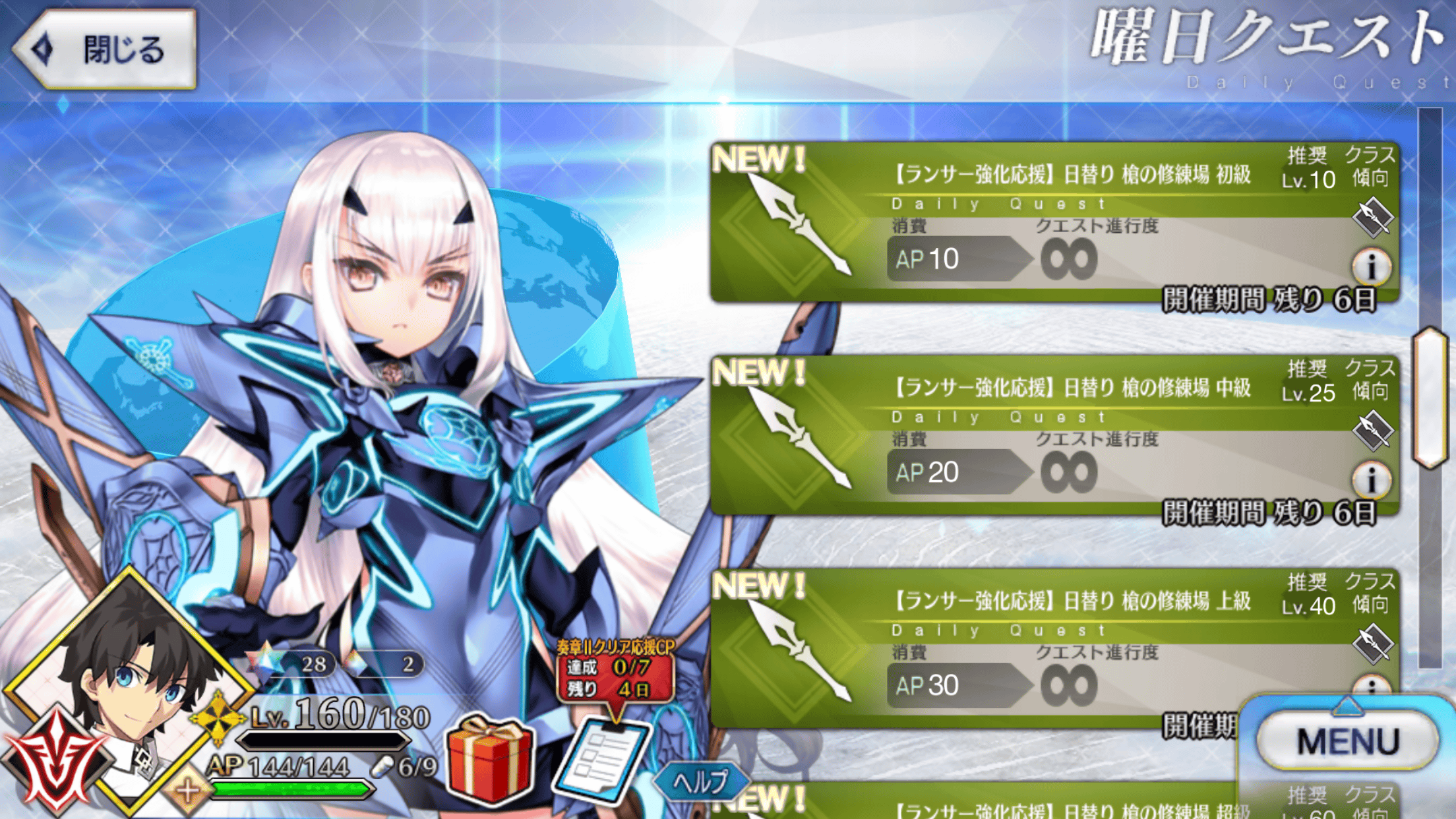 期間限定で、カルデアゲート内に曜日ごとに出現するランサークラスの「修練場」を全種開放いたします。