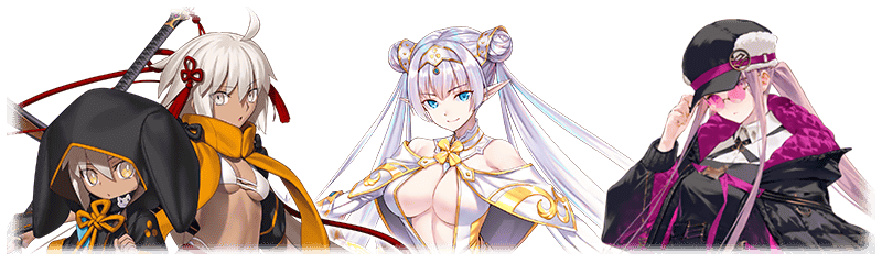 ※★4(SR)以上確定にはサーヴァントと概念礼装が含まれます。 ※2019年1月1日(火) 0:00以降に新たに配信されるメインストーリー、期間限定イベント、一部クエスト、キャンペーンおよび召喚では、真名隠し対象サーヴァントの真名が表示されます。 ※本ページの画像はすべて開発中のものです。実際の画像とは異なる場合があります。