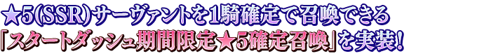 「Fate/Grand Order」を始めたばかりの新米マスターを応援するため、「スタートダッシュ期間限定★5確定召喚」をリリースいたします!