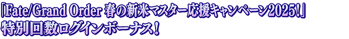 ◆「Fate/Grand Order 春の新米マスター応援キャンペーン2025!」特別回数ログインボーナス◆