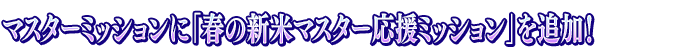 ■「春の新米マスター応援ミッション」に新たなミッションを追記!