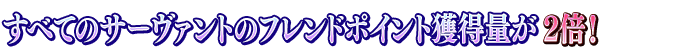 ※フレンドではないマスターもフレンドポイント獲得量2倍の対象となります。 ※ゲストサーヴァントの場合はフレンドポイント獲得量2倍の対象外となりますのでご注意ください。