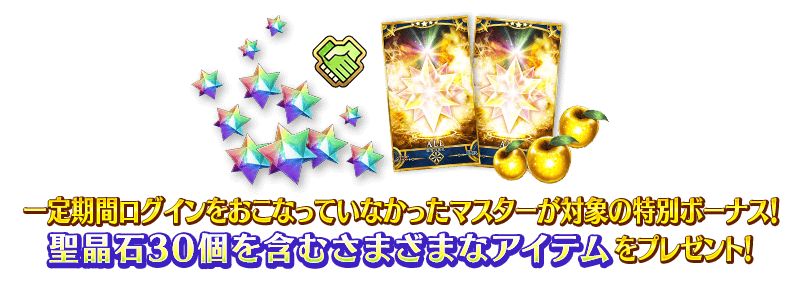 一定期間ログインをおこなっていなかったマスターを対象に、期間限定で「カムバックログインボーナス」を開催いたします。