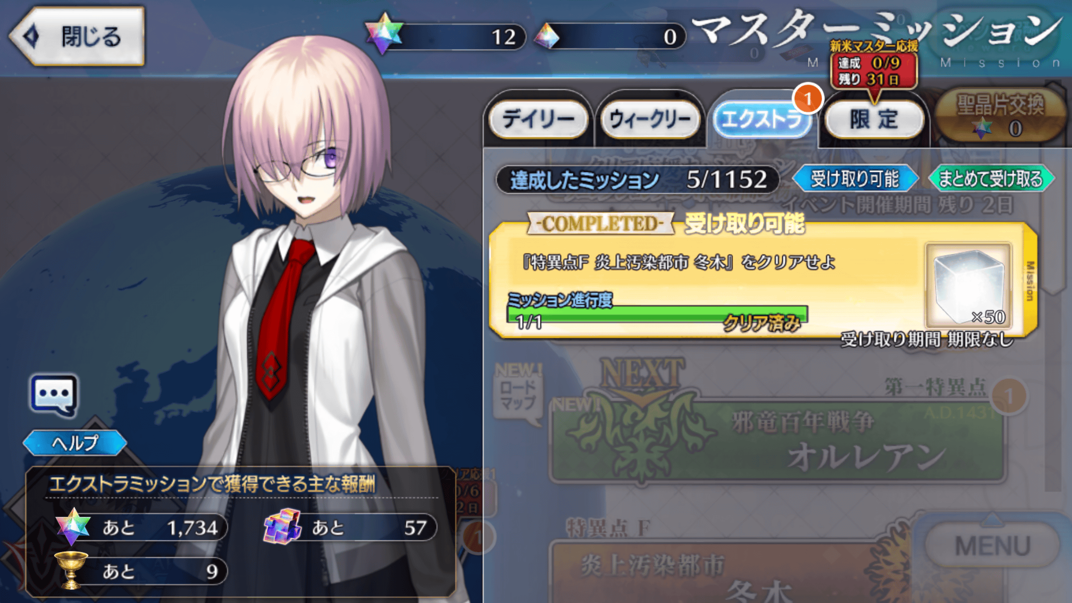 2025年4月12日(土) 12:59までに「特異点F 炎上汚染都市 冬木」をクリアしているマスターが対象