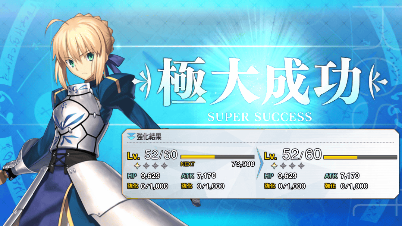※現在開催している他キャンペーンにて、「一部のサーヴァントの強化をおこなった際の大成功・極大成功の発生率が2倍」を実施しておりますが、各キャンペーンで「強化大成功・極大成功率2倍」の対象となっている場合でも効果は重ならず、強化大成功・極大成功率は2倍となります。