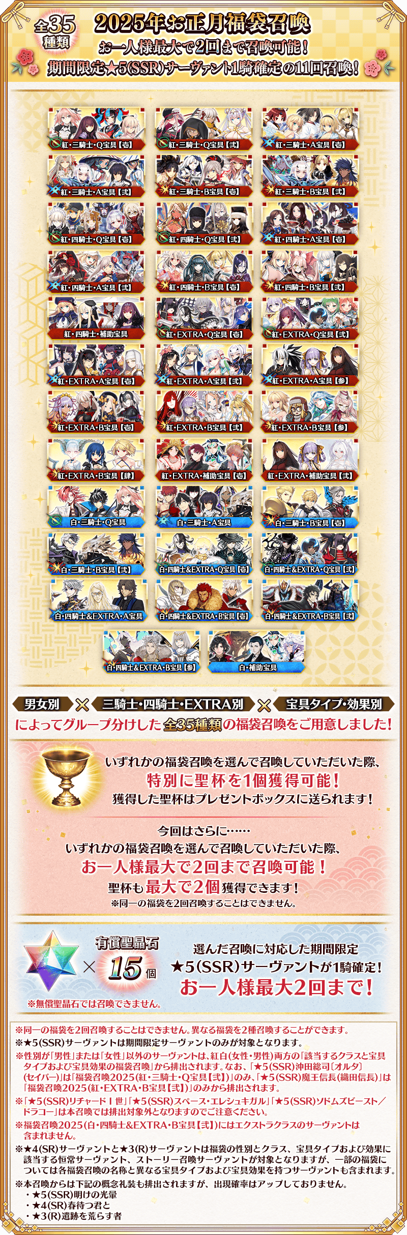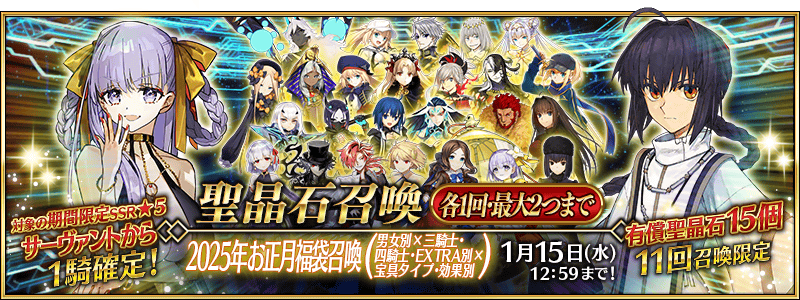 ◆「2025年お正月福袋召喚(男女別×三騎士・四騎士・EXTRA別×宝具タイプ・効果別)」期間◆