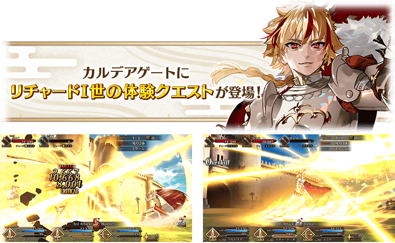 ※リチャードⅠ世の体験クエストにアドベンチャーパートはありませんのでご注意ください。 ※本クエストのゲストサーヴァントにはクラススコア効果は適用されません。