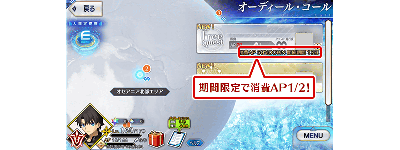 【宝物庫の扉を開け、種火集め クエストの推奨Lvと消費AP】