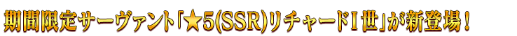 ◆「ニューイヤー2025 リチャードⅠ世ピックアップ召喚」期間◆