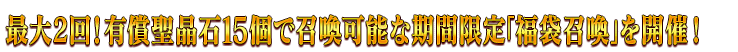 【カムバックログインボーナス合計】 ・聖晶石 30個(聖晶石召喚最大11回分) ・フレンドポイント 合計14,000pt(フレンドポイント召喚70回分) ・叡智の業火ALL★5(SSR) 18枚 ・黄金の果実 18個 ※「(聖晶石召喚最大11回分)」は、同一の聖晶石召喚をおこなった場合に限ります。