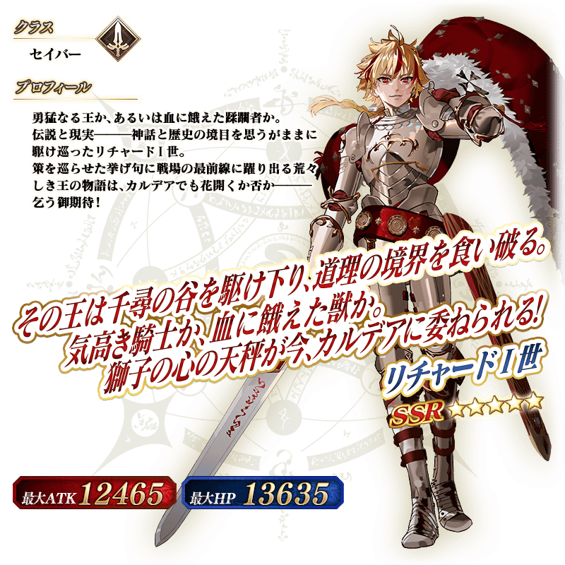 「★5(SSR)リチャードⅠ世」をサポートメンバーに迎え、期間限定のクエストに挑むことができます!
