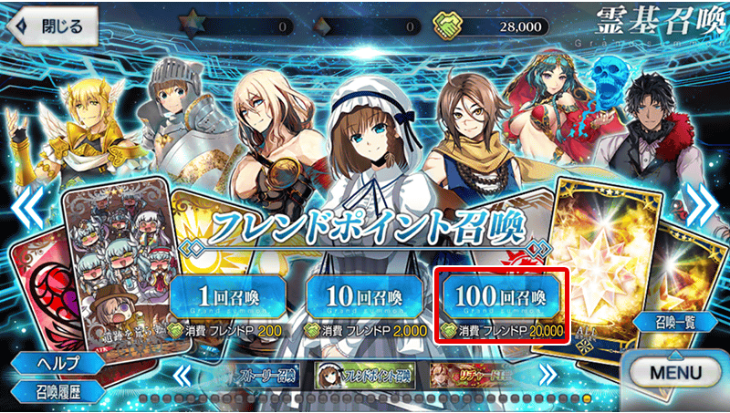 これまでは10回まで連続召喚が可能だったフレンドポイント召喚にて、新たに「100回召喚」がおこなえるようになりました!