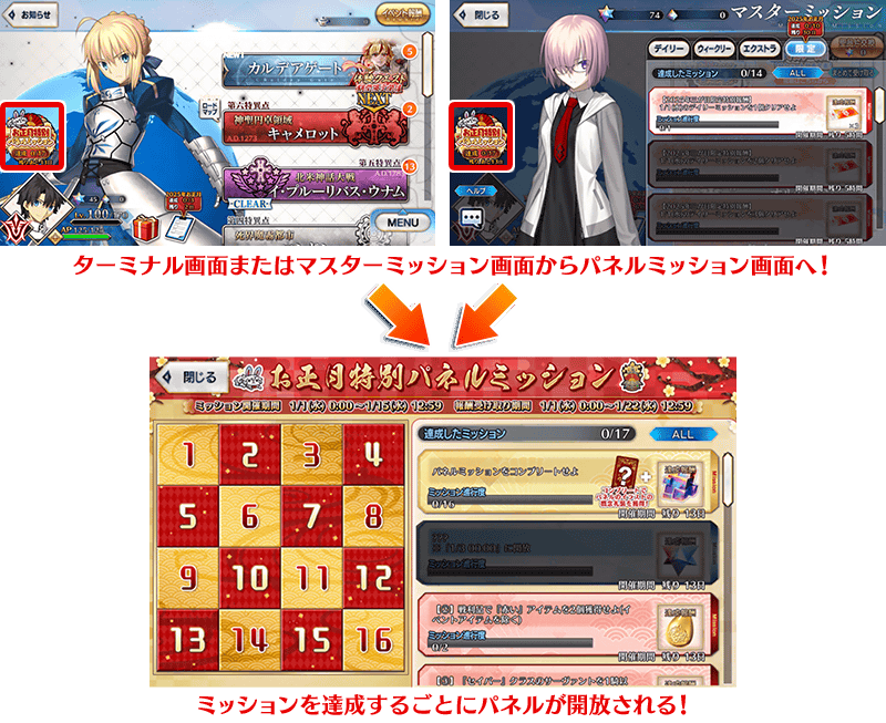 下記の期間中、期間限定の「お正月特別パネルミッション」を開催いたします。
