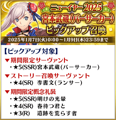 ◆「ニューイヤー2025ピックアップ召喚」期間◆