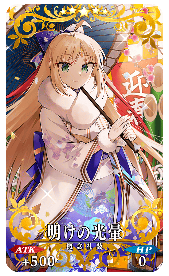 ※下記の概念礼装は、ピックアップ期間中フレンドポイント召喚でも獲得可能です。また、自動変還設定にて★3(R)の概念礼装を登録している場合は自動変還の対象となりますのでご注意ください。