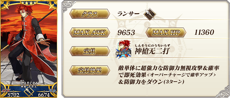 ※上記の「★4(SR)李書文(ランサー)」のセイントグラフは霊基再臨第2段階のものです。