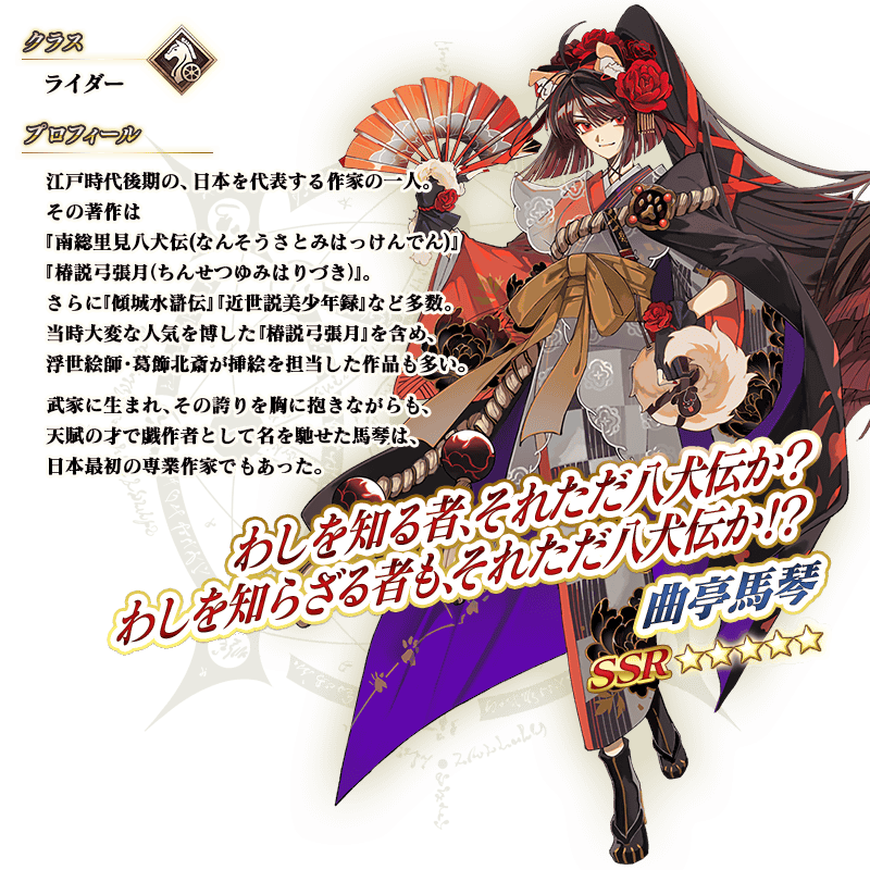 ※上記の「★5(SSR)曲亭馬琴」のイラストとセイントグラフは霊基再臨第2段階のものです。