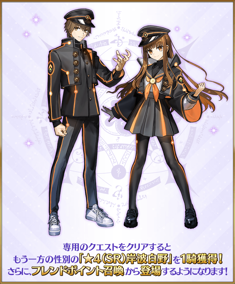 ※クエストに開催期限はありません。 ※専用クエストにはアドベンチャーパートはありませんのでご注意ください。 ※「岸波白野(男性)」と「岸波白野(女性)」は、パーティに同時に編成することはできません。なお、サポートサーヴァントに「★4(SR)岸波白野」を選択した場合は同時に編成することができます。 ※「★4(SR)岸波白野」は性別によるステータスの差はありません。