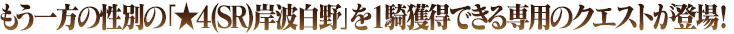 「奏章Ⅲ」のクリア後に出現する専用クエストをクリアすることで、「奏章Ⅲ」クリア時に選択しなかった性別の「★4(SR)岸波白野」を1騎獲得できます。