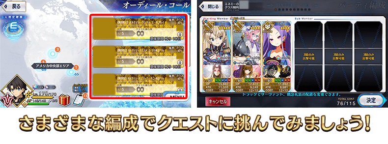 自動編成機能も活用して複数のパーティを編成し、カルデアの総力を結集して超高難易度クエストに挑みましょう!