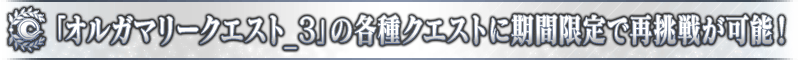 「オルガマリークエスト_3」および難易度が異なる「オルガマリークエスト_3」は一度クリアすると消滅するものとなりますが、下記の期間中は何度でも挑戦できるクエストが期間限定で登場します。