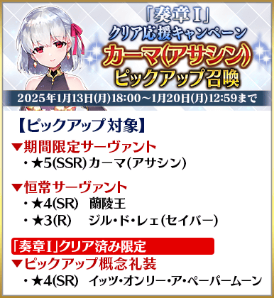 ◆『「奏章Ⅰ」クリア応援キャンペーンピックアップ召喚』期間◆
