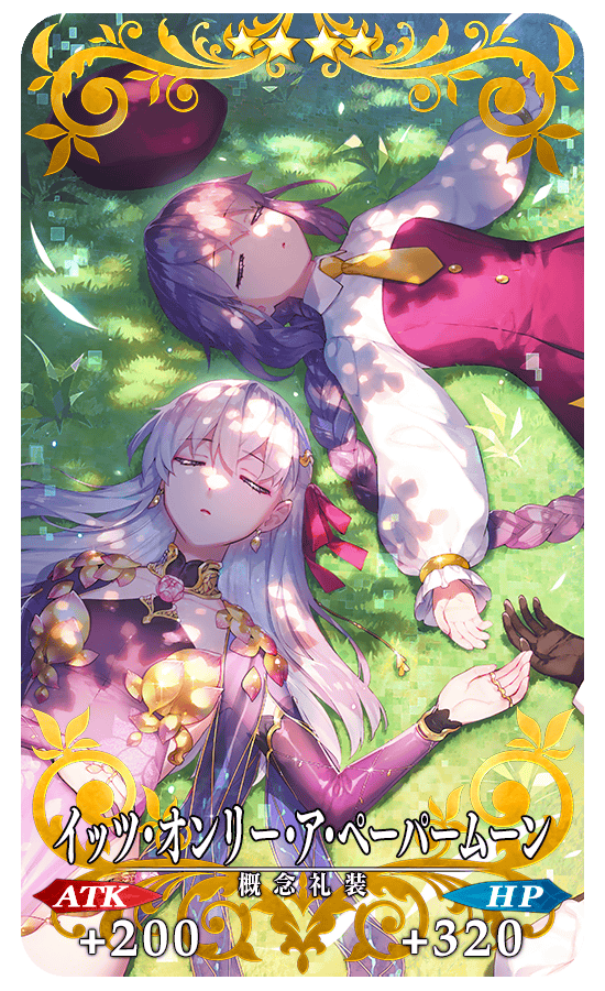 ※本召喚において、ストーリー限定の概念礼装「★4(SR)イッツ・オンリー・ア・ペーパームーン」は「奏章Ⅰ 虚数羅針内界 ペーパームーン」をクリア済みの場合のみ排出され、ピックアップ対象となります。
