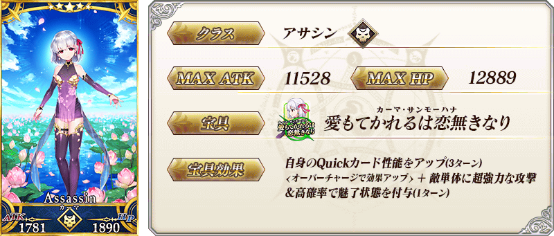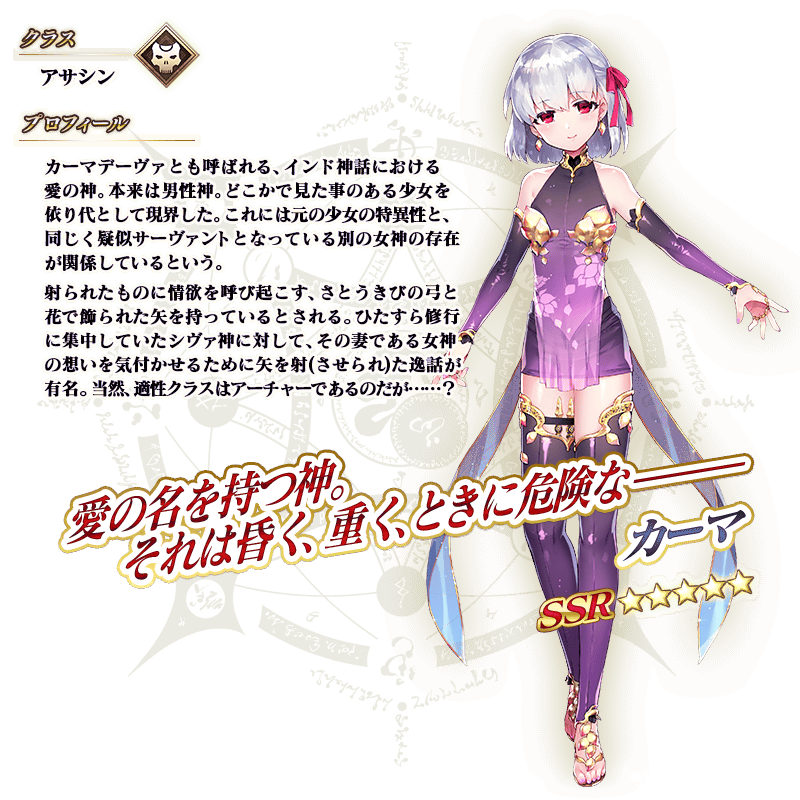 ※「★5(SSR)カーマ(アサシン)」の宝具は、再臨段階によって名称と演出が変化いたします。