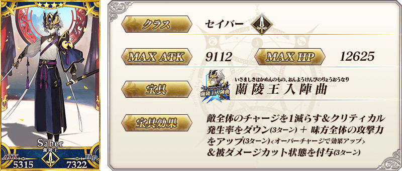 ※上記の「★4(SR)蘭陵王」のセイントグラフは霊基再臨第2段階のものです。