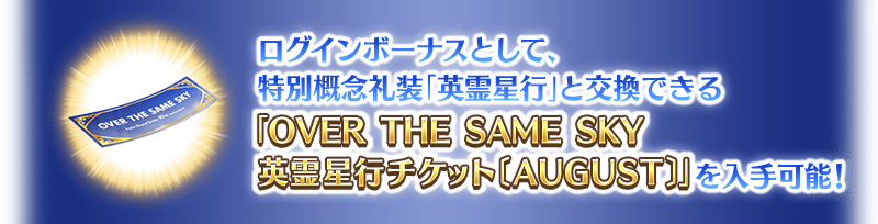 ※本ログインボーナスで獲得できる「OVER THE SAME SKY 英霊星行チケット〔AUGUST〕」で交換可能な「英霊星行」は、九州ブロックのもののみとなります。