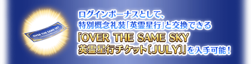特別概念礼装「英霊星行」の「中国・四国ブロック」全18種類の中からお好きな1枚と交換できる「OVER THE SAME SKY 英霊星行チケット〔JULY〕」が手に入るログインボーナスを実施!