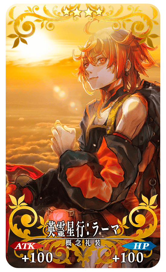 ※すべての「英霊星行」の性能は同一となります。 ※「英霊星行」は、レベル上限が最大および最大レベルにて排出されます。 ※「英霊星行」を強化時に素材として使用した際の獲得経験値は、ストーリー召喚などから排出される同レベルの★4(SR)概念礼装よりも少なくなります。