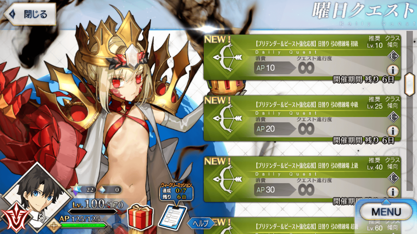 期間限定で、カルデアゲート内に曜日ごとに出現するすべての「修練場」を開放いたします。