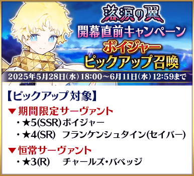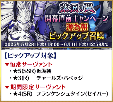 ◆『「落涙の翼」開幕直前キャンペーンピックアップ召喚』期間◆