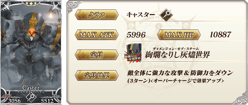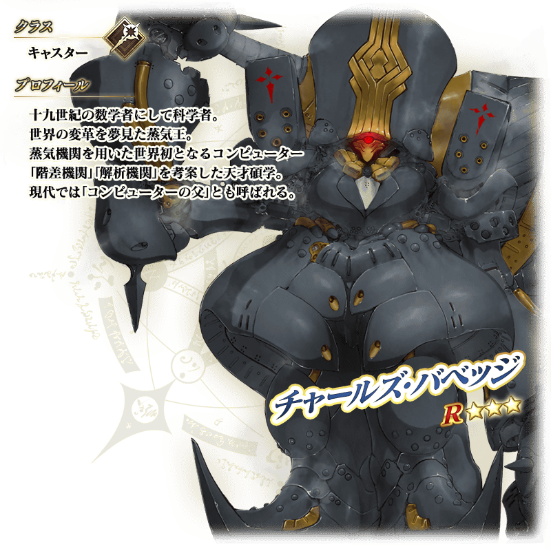 ※上記の「★3(R)チャールズ・バベッジ」のイラストとセイントグラフは霊基再臨第2段階のものです。