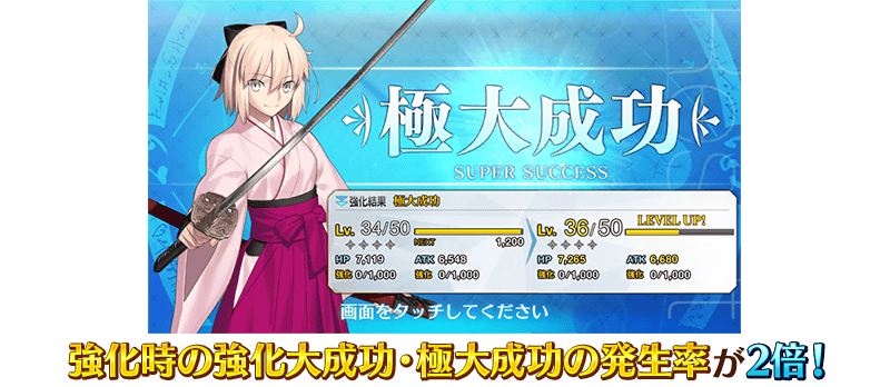 限定 イベントボーナスサーヴァントの強化時の大成功・極大成功率が2倍!