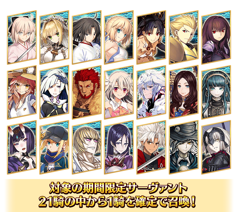 ※本召喚における★5(SSR)サーヴァントの排出対象は、確定召喚も含めて対象の期間限定サーヴァント21騎のみとなります。