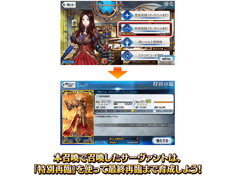 素材やQPなしで一気に最終再臨にできる「特別再臨」を活用!
