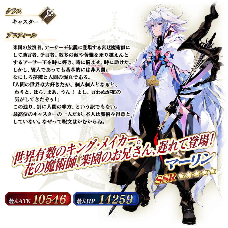 ※上記の「★5(SSR)マーリン」のイラストは霊基再臨第2段階のものです。