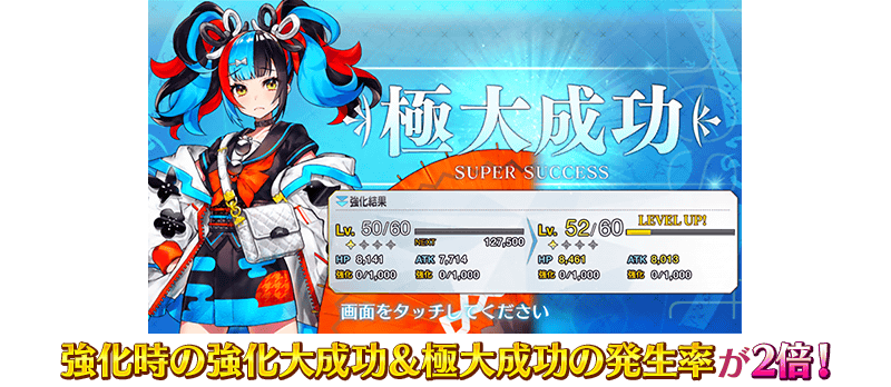 限定 イベントボーナスサーヴァントの強化時の大成功&極大成功率が2倍!