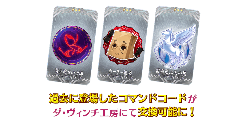 ダ・ヴィンチ工房の「マナプリズムを交換」に、過去のバレンタインイベントで登場したコマンドコード3種を恒常的に追加いたします!