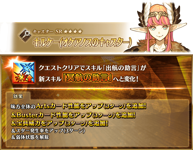 また、「★4(SR)キルケー(オケアノスのキャスター)」については真名を判明させている必要があります。