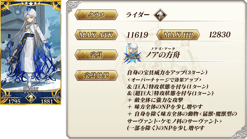 ※「★5(SSR)ネモ/ノア」の宝具は、霊基再臨第3段階のバトルキャラに変化した際、名称と演出が変わります。
